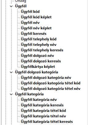 A többi struktúra adatra jellemzően a Kód és/vagy Név adatok megjelenítése kapcsolódó funkcióval, valamint a struktúra adat keresése, esetleg a kód és név képlet adattípusok készültek el. pl.: