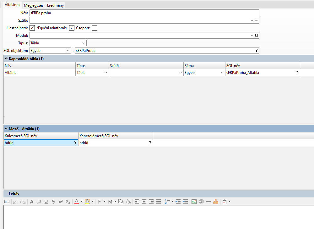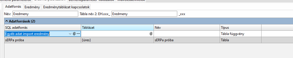Az így létrehozott táblákat lekérdezésekhez is lehet használni. Ehhez először készíteni kell egy SQL adatforrást, amit később például az Eredményhalmaz definícióban használhatunk.