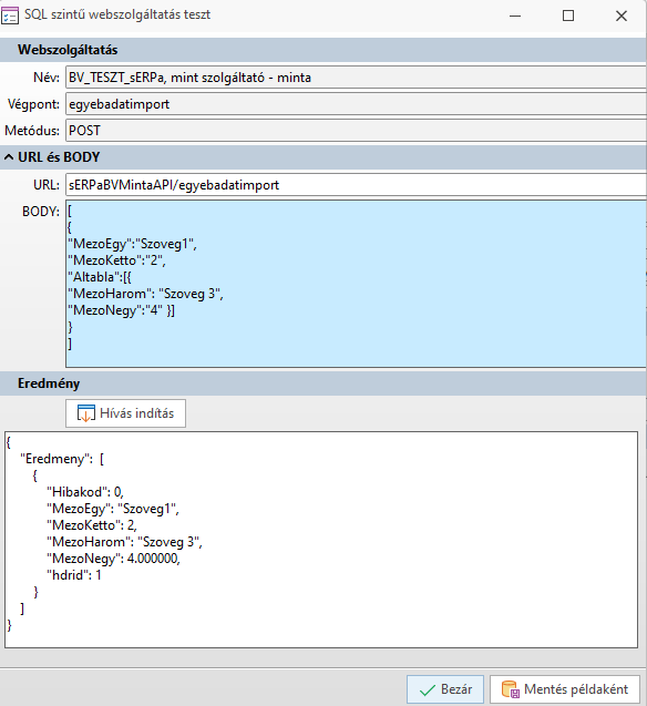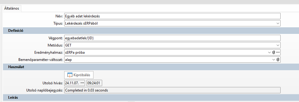 Az eddig elkészített műveletet, adatforrást és eredményhalmazt használhatjuk új sERPaApi létrehozására.