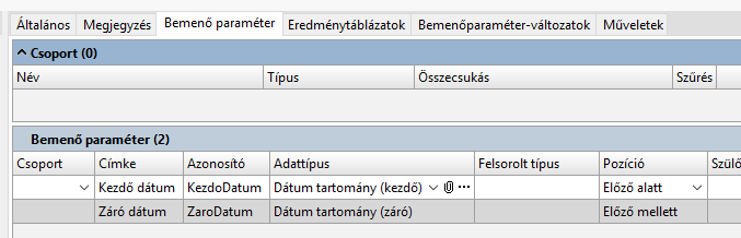 Hogy igaz legyen a feladatban megfogalmazott "adott időszak" vegyünk fel a Bemenő paraméterekbe egy dátum intervallumot: