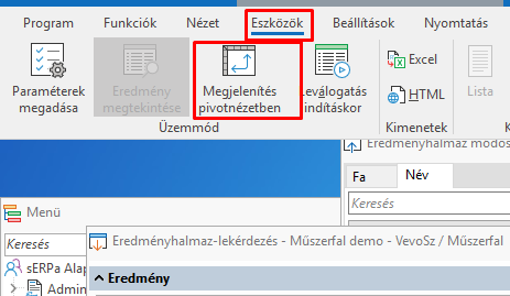 Az eredményhalmaz lekérdezésben a Megjelenítés pivotnézetben gomb megnyomása után