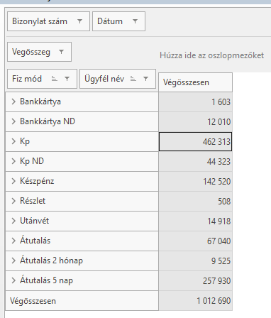 Az egyes fizetési módokra így megvan az összesített adatunk és a lenyitással ezt láthatjuk ügyfelenkénti részlezetettségben.