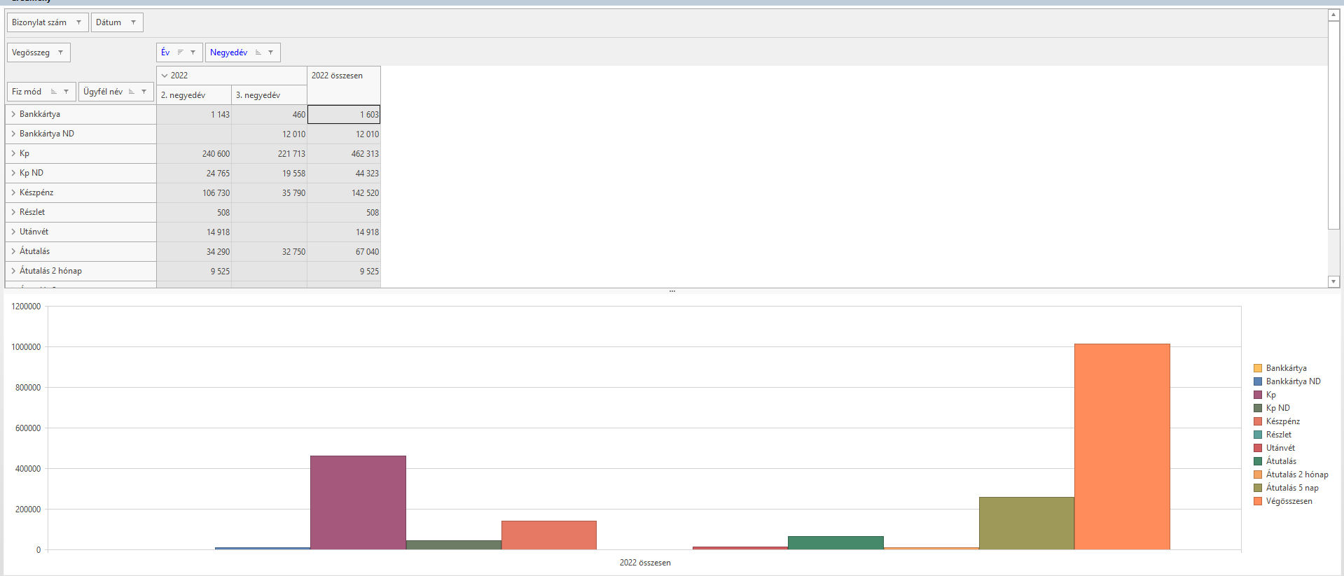 A 2022 összesenre kattintva látjuk, hogy a legnagyobb forgalom ebben az időszakban a bankkártyás fizetés volt: