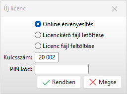 Az érvényesítő kód funkcióval a PROGEN és partnerei közötti együttműködési megállapodásnak megfelelő programhasználati jogosultságok állíthatók be. Az Érvényesítő kód funkció a Licenc adatai funkció Új licenc funkciójával is elérhető.