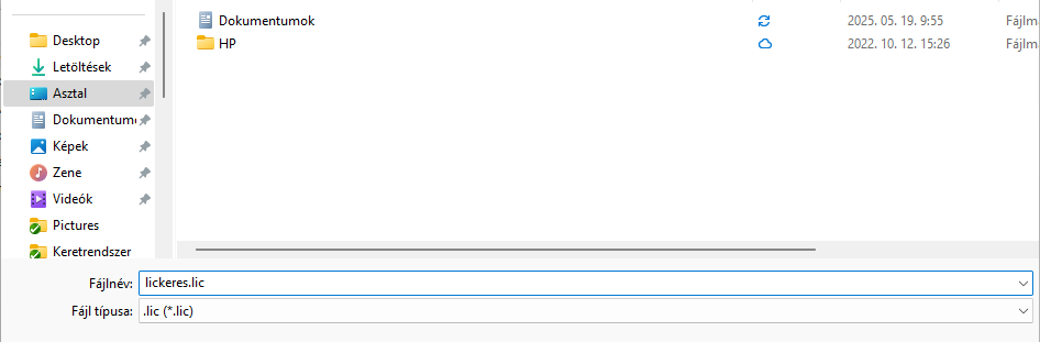 A Sikeres feltöltés után a Licenc fájl letöltés gomb aktív, és a böngészőben szokásos módon letölthető az offline érvényesítéshez szükséges fájl.