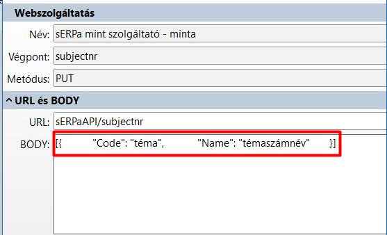 1. Megadjuk az URL és BODY alatt található Body-ban a témaszám adatait, amelyet fel szeretnénk venni.