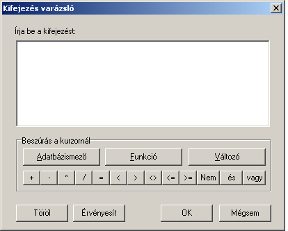 Kifejezés összeállítása vizuális elemek segítségével az alábbi párbeszédablakban történhet: