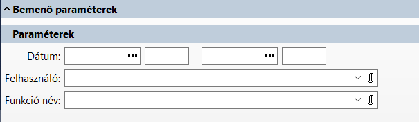 - Felhasználó: A felhasználó azonosítója, melyre szűrhetjük a funkció használat információkat. Nem kötelező megadni. Ha nem adjuk meg, az összes felhasználóról összegyűjtött funkció használat infomációkat kilistázza.