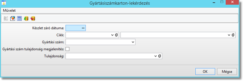 Funkció elérése menüszerkesztéskor: Készlet / Gyártási szám karton