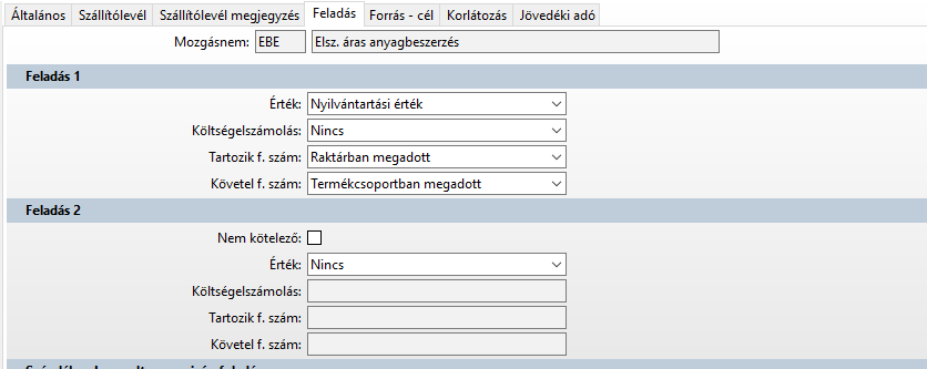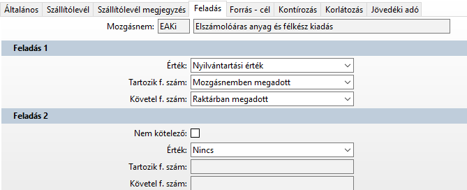 Mozgásnem meghatározása és könyvelése: A kiadás Tartozik oldala, azaz a felhasználás a mozgásnemtől és a termékcsoporttól függően kerül beállításra.