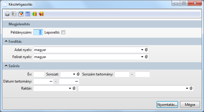Funkció elérése menüszerkesztéskor: Készlet / Listák / Készletigazolás