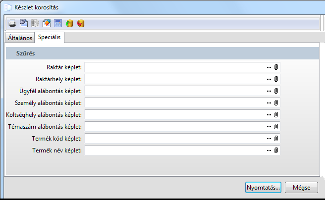 Funkció elérése menüszerkesztéskor: Készlet / Listák / Készlet korosítási