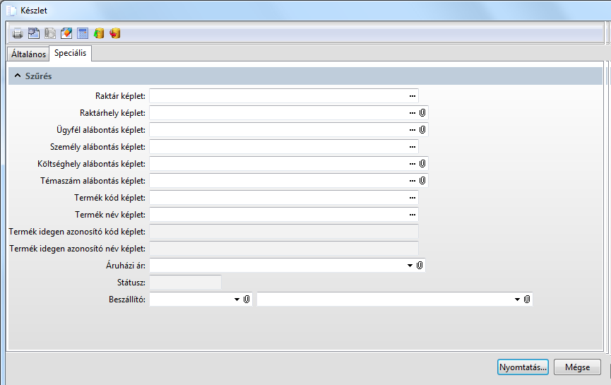 Funkció elérése menüszerkesztéskor: Készlet / Listák / Készlet