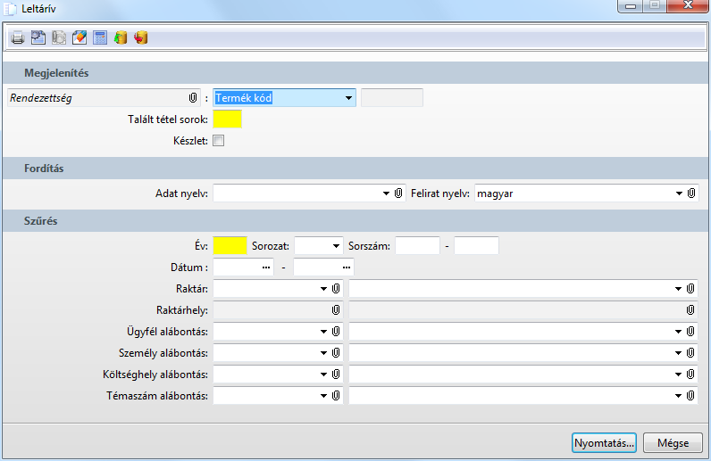 Rendezettség: Bizonylatszám, Kód vagy Név.