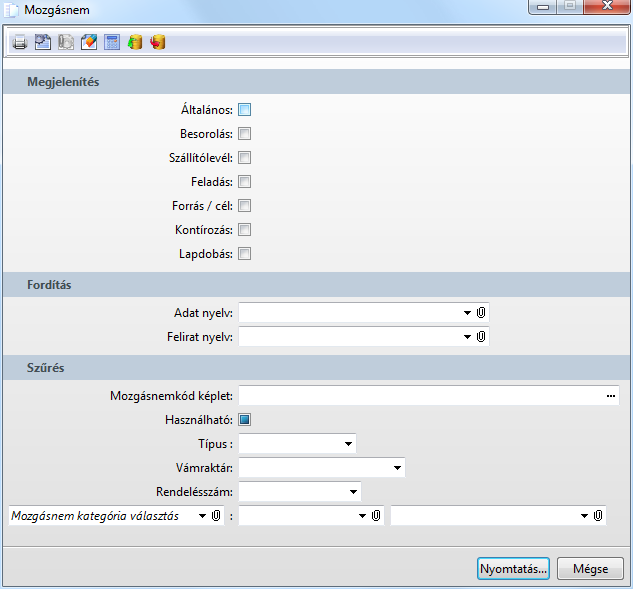 Funkció elérése menüszerkesztéskor: Készlet / Listák / Struktúra adatok listái / Mozgásnem