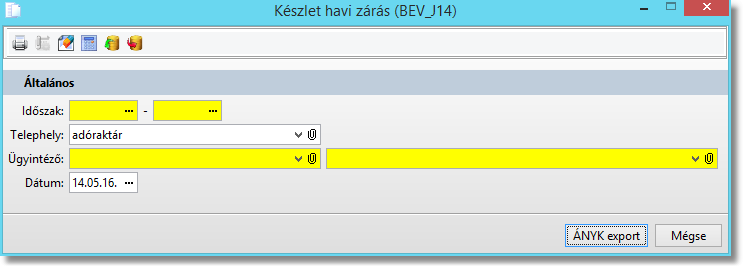 Funkció elérése menüszerkesztéskor: Készlet / Vám- és adóraktár / Adóraktár bevallás (J14 nyomtatvány)