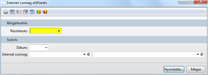 A listával kinyomtatható a megadott időpontban érvényes internet csomagok mennyisége, szükség szerint előfizetőnkénti részletezéssel.