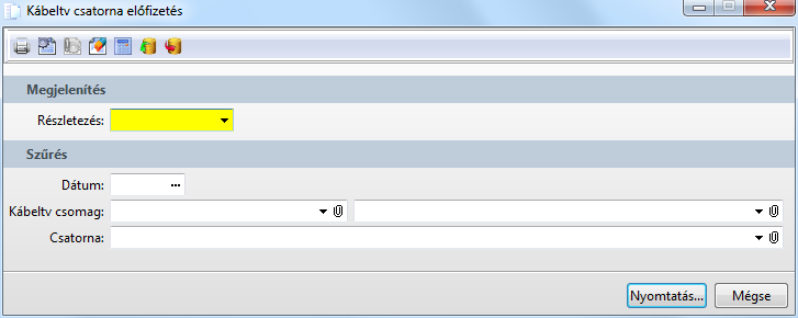 A listával kinyomtatható a megadott időpontban engedélyezett kábeltv csatornák mennyisége csomagonként és összesen, szükség szerint előfizetőnkénti részletezéssel.
