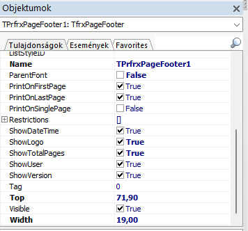e.Jobbra alulra került át a felhasználó név, TfrxPageFooter.ShowUser tulajdonság és a dátum és idő TfrxPageFooter.ShowDateTime tulajdonság. Az alapértelmezett működés megegyezik a régivel.