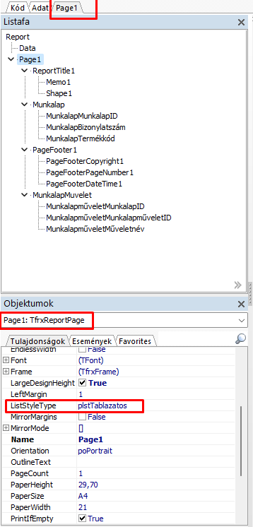 A FastReportban a TfrxReportPage-ben készült egy PageStyleType tulajdonság a következő választható értékekkel: Táblázatos / Bizonylat. Az alapértelmezett értéke a Táblázatos.