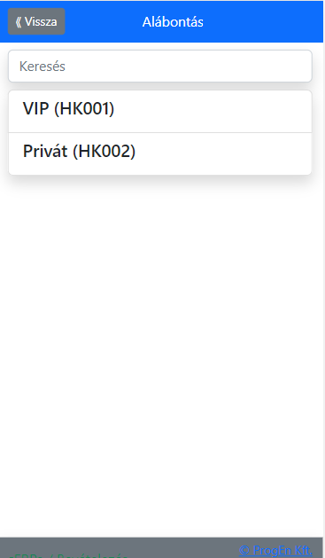 Abban az esetben, ha olyan vonalkódot olvasunk, ami nem szerepel az adatbázisban, a program lehetőséget kínál arra, hogy a vonalkódot egy létező termékhez rögzítsük. Erre csak akkor van lehetőség, ha az adott felhasználónak ez a sERPaMobil paraméterben engedélyezett. Az Ok gomb megnyomása után a program a Termék választás oldalra navigál, ahol megadhatjuk, hogy mely termékhez szeretnénk ezt a vonalkódot rögzíteni. A termék kiválasztását követően a Vonalkód felvétel oldalra navigál a felület.