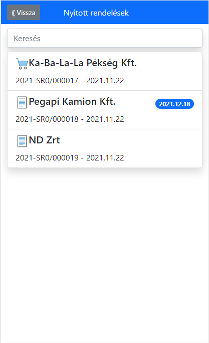 A rendelésben szereplő mennyiség leolvasásakor zöld hátterű lesz a terméksor, hogy látni lehessen, hogy teljesült a rendelés. Pirosra vált a háttér, ha a rendeltnél többet olvas le a kezelő.