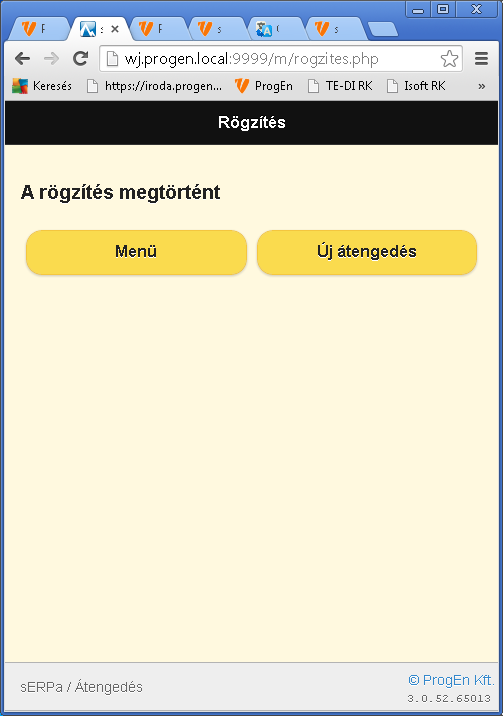 Rögzítést nyomva tájékoztató üzenetet kapunk a rögzítés sikerességéről.