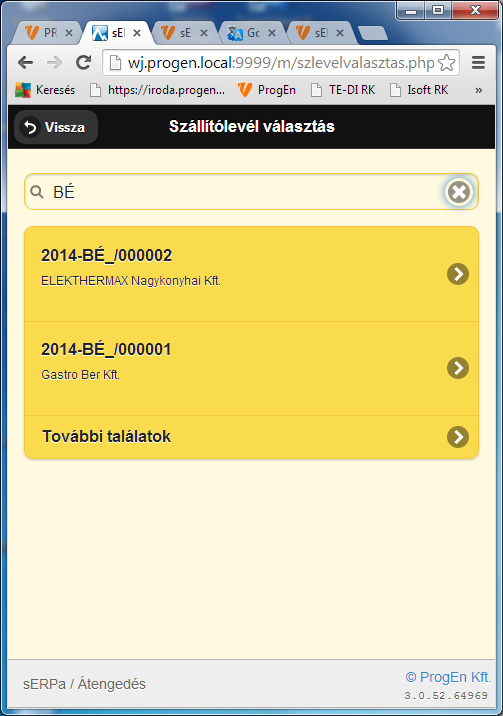 A megjelenő oldalon be kell gépelni a bizonylatszámból néhány karaktert, amivel leszűkül a megjelenő "Előfeldolgozott" állapotú szállítólevelek köre.