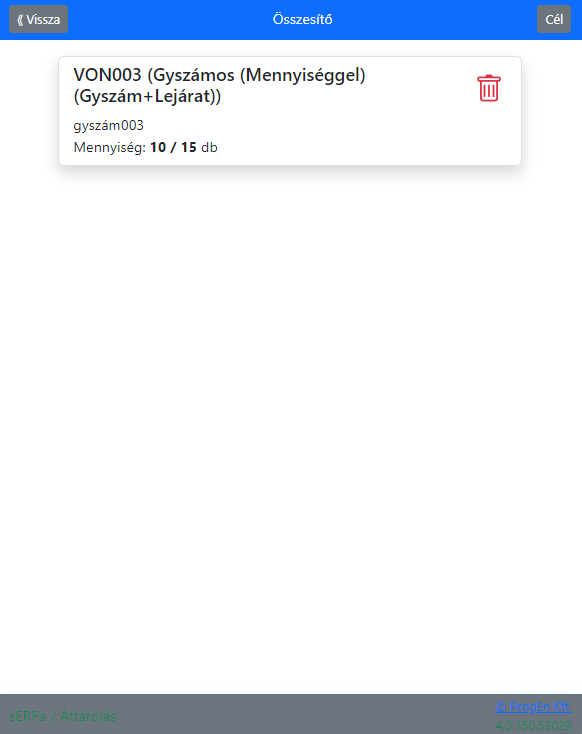 Ekkor adhatja meg a raktáros a Cél raktár / raktárhelyet, ahová a beolvasott cikkekből a megadott mennyiségeket át szeretné pakolni.