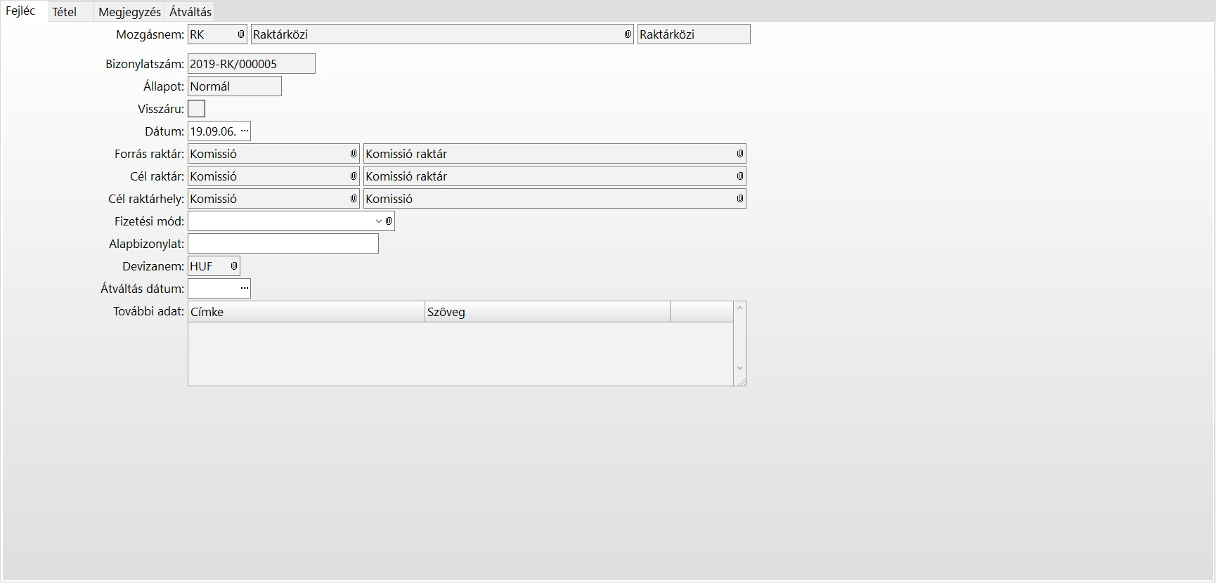 Ha megadtuk az áttárolandó tételek adatait, akkor a Tovább gombbal vihetjük tovább a folyamatot.
