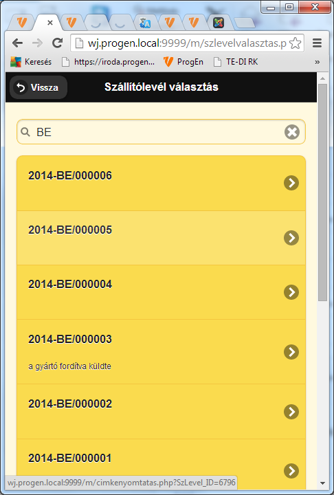 A megjelenő szállítólevelek alapján ki kell választani, hogy melyiknek a tételeiről szeretnénk gyártási számot tartalmazó címkét nyomtatni.