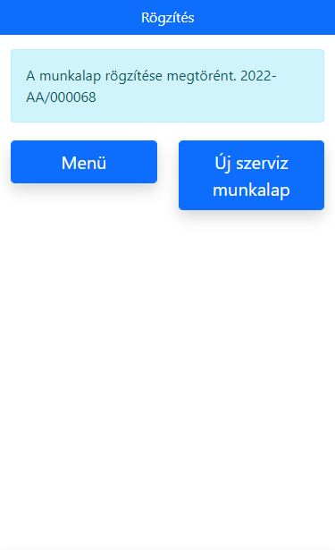 A Rögzítés oldalról lehetőségünk van a sERPa mobil menübe visszajutni, vagy új munkalapot felvenni.