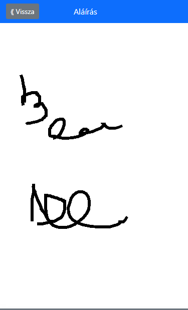 Az oldal kék feljéce alatt fehér rész lényegében a beviteli mező az aláíráshoz. Itt rajzszerűen be tudjuk vinni kézzel az általunk kigondolt mintát.