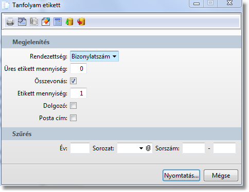 A lista etikett címkék nyomtatására szolgál a tanfolyamban (Hallgató fül) levő ügyfél / dolgozó adatokból, ügyfél esetén címadatot vagy postaadat dolgozó esetén állandó vagy tartozódási cím adattal.