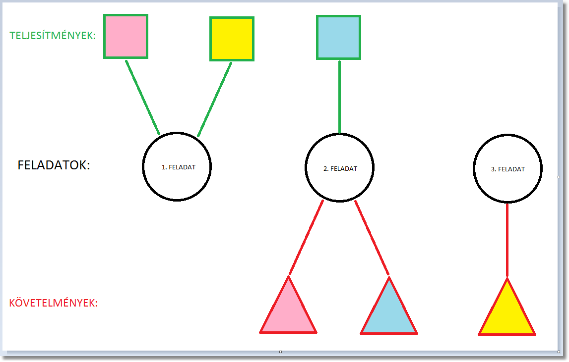 A teljesítmények teljesülésével készül el a követelmény. Amennyiben olyan feladatot veszünk fel, ahol nincs követelmény, akkor a teljesítmények gyakorlatilag erőforrások, amiket használhatunk más feladat követelményéhez.