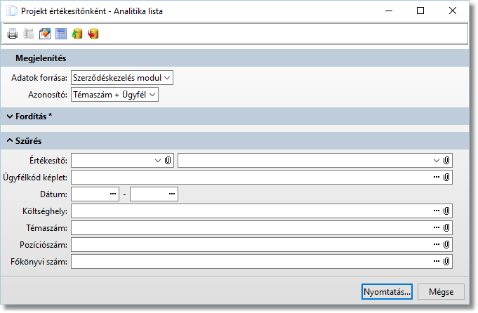 GenericPrint segítségével generált xsl: ProjektErtekesitonkentL.gen.xsl