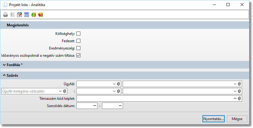 Funkció elérése menüszerkesztéskor: Projektkezelés / Projekt lista - Analitika