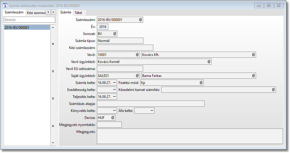 Ezzel elkészült a számla, és a neve is megváltozott a Számla előkészítés funkcióban: