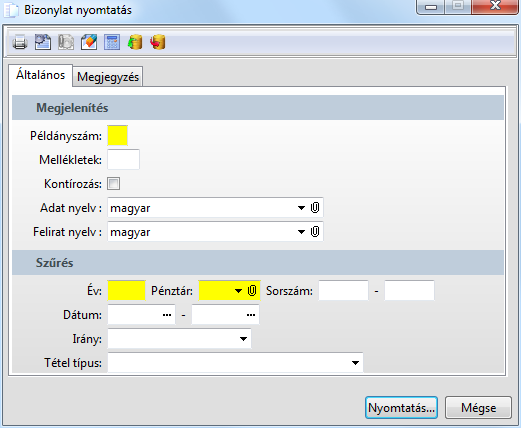 (Nincs, Érték, Összes) Pénztárkód = [Érték] esetén a megadott pénztárkódra lehet csak lekérdezni. |