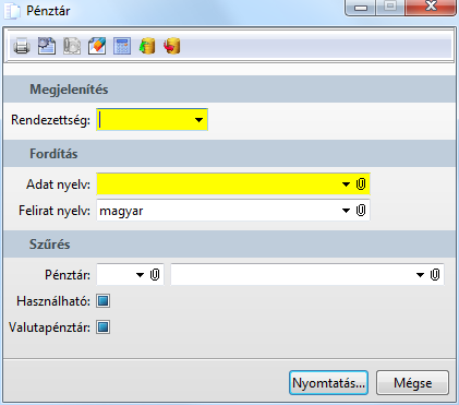 (Nincs, Érték, Összes) Pénztárkód = [Érték] esetén a megadott pénztárkódra lehet csak lekérdezni. |