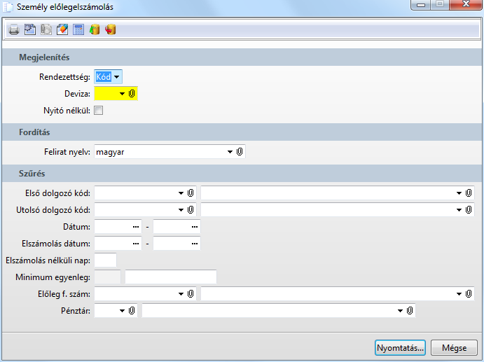 A pénztárbizonylat és a bankkivonat funkciókban a személy előlegelszámolás típussal felvett bizonylattételek kerülnek további szűrési lehetőségekkel listázásra.