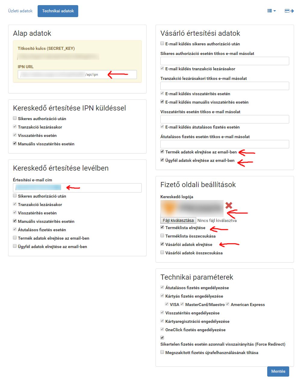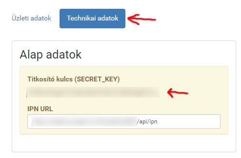 Az IPN URL-t a [saját weboldal]/SimplePay/ipn címre kell állítani.