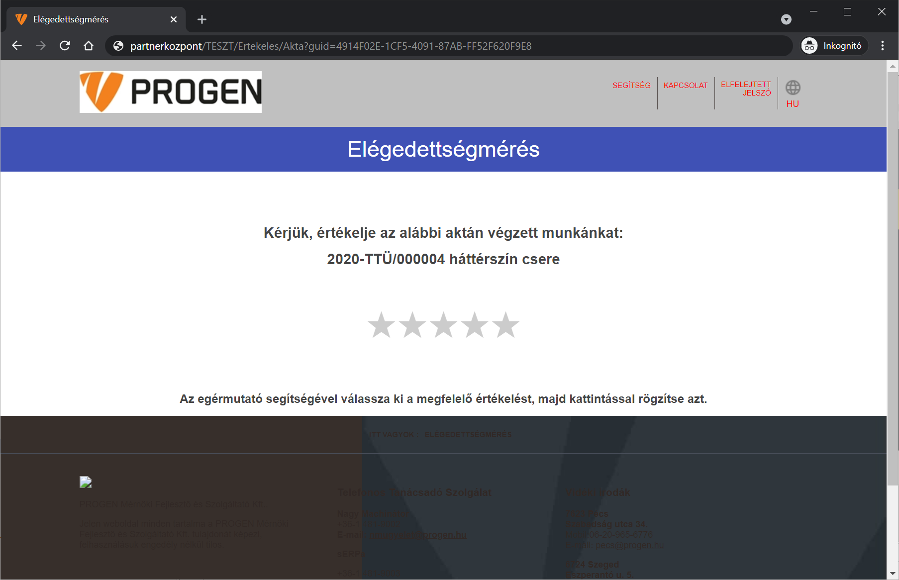 Az értékelés a csillagra való kattintással történik, azonnal, nem szükséges okézás, vagy beküldés gomb megnyomása(nem is érhető el).