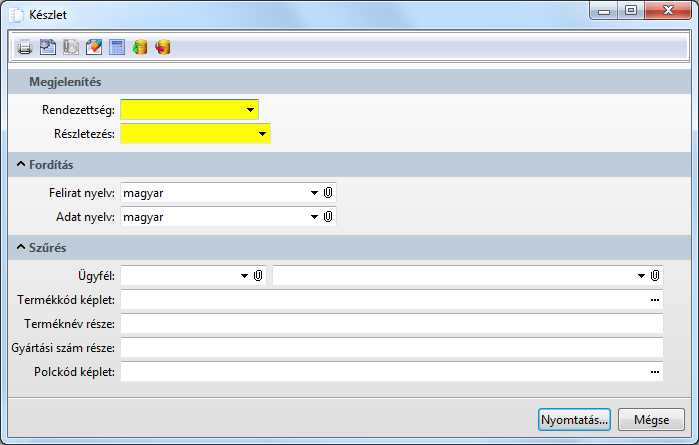 Funkció elérése menüszerkesztéskor: Szerviz / Szerviz készlet lista