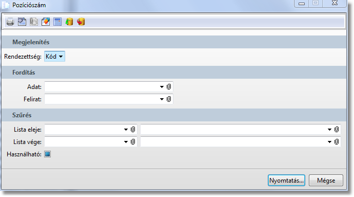 Funkció elérése menüszerkesztéskor: Struktúra / Pozíciószám lista