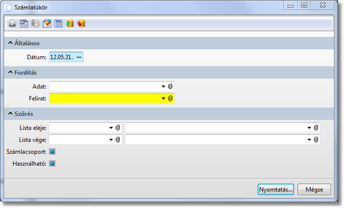 Használható: A főkönyvi számnál lévő használhatóságot jelölő pipa, ha igaz X kerül a listába