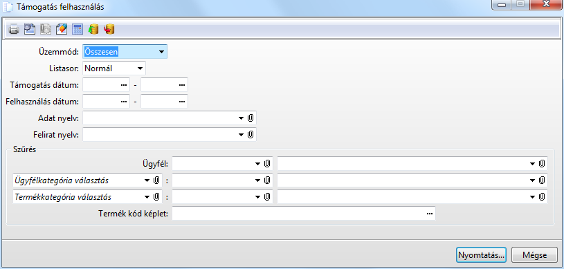 Az ügyfélhez rögzített támogatások, és ezek felhasználásának listázására van lehetőség a listával.