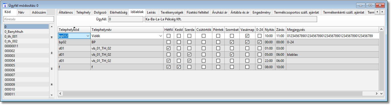 Az Ügyfél bevitel Időablak fülén vigyük fel az időablakokat. (részletes leírás a Súgóban)