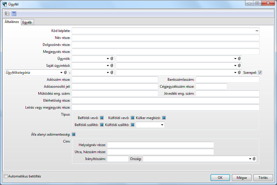 Szűrés az ügyfél adószáma, EU adószáma alapján. |
