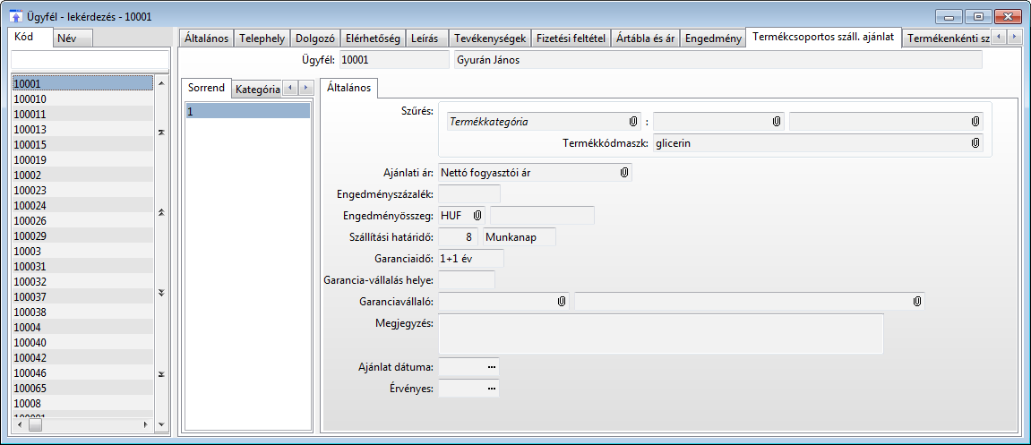 A szállítótól kapott termékcsoportra vonatkozó ajánlat és engedmény megadásának a helye.